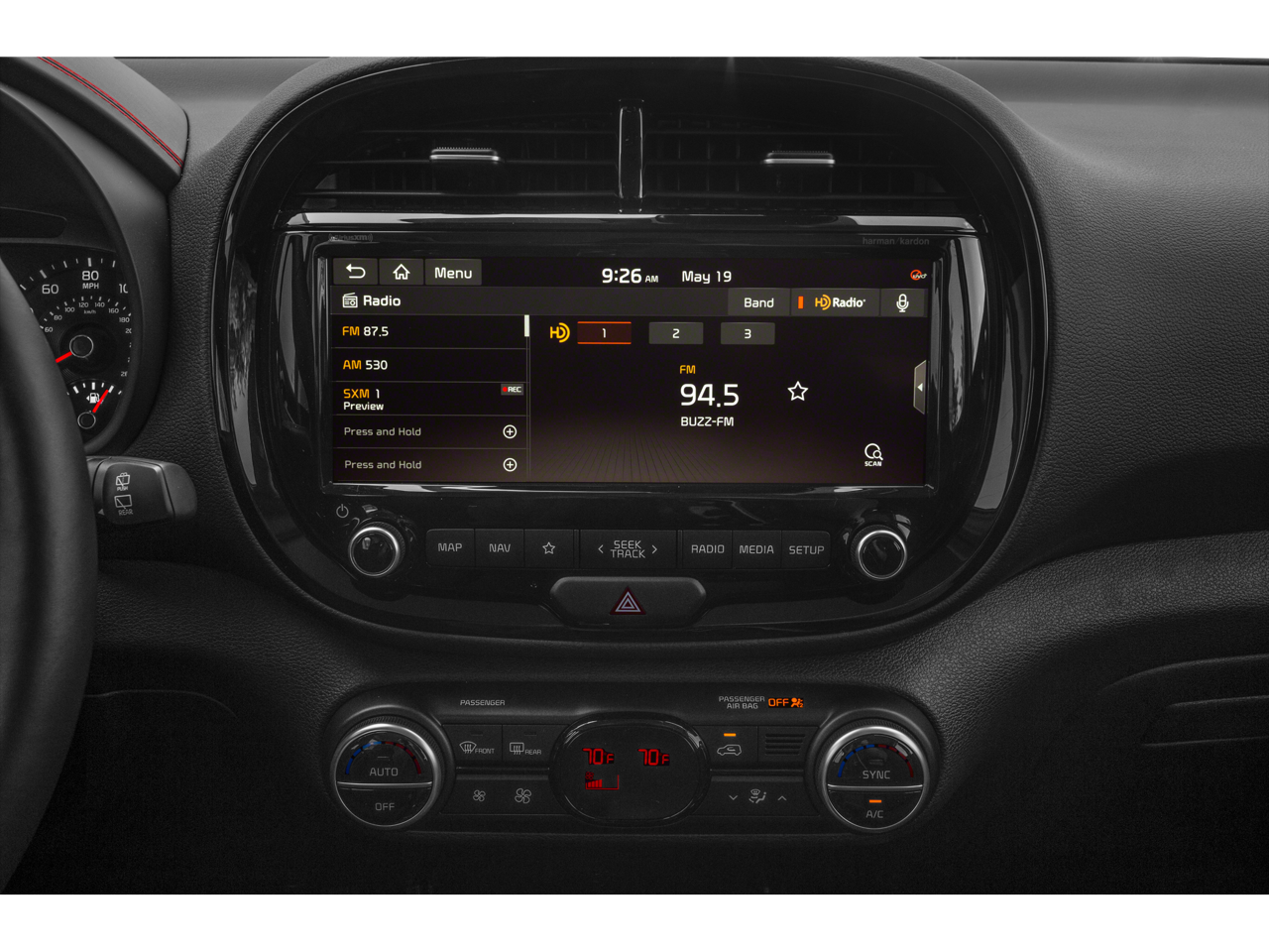 - Radio: AM/FM/MP3 Audio System -inc: navigation, HD radio, SiriusXM, 10.25" color touch screen, 6 speakers, support for Android Auto and Apple CarPlay, harman/kardon premium sound system w/subwoofer and external amplifier, USB input, audio remote control, Bluetooth® hands-free w/voice recognition and black shark fine type antenna