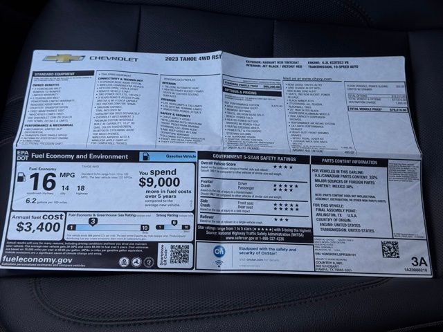 Radiant Red Tintcoat 2023 Chevrolet Tahoe RST 4WD 10-Speed Automatic with Overdrive EcoTec3 6.2L V8 Tahoe RST, 4D Sport Utility, EcoTec3 6.2L V8, 10-Speed Automatic with Overdrive, 4WD, Radiant Red Tintcoat, Jet Black/Victory Red Leather.